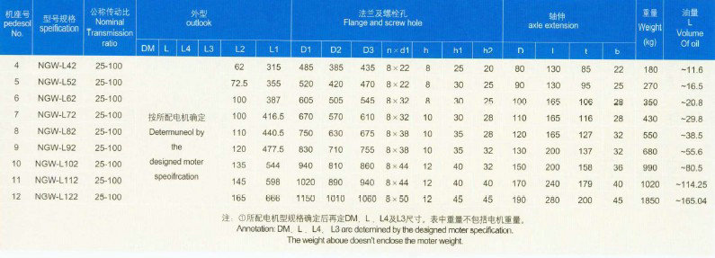 產(chǎn)品由NGW—L型單級L11-L71,兩級L42—L122兩種系列組成,適用于;臺金起重運輸輕化及通用機械設(shè)備,適用條件如下: