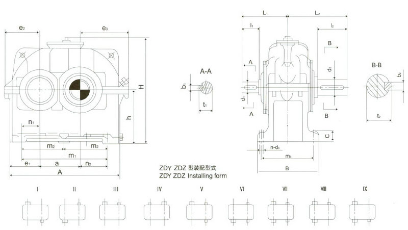 三、ZDZ減速器的裝配型式及外形尺寸見圖1,表21